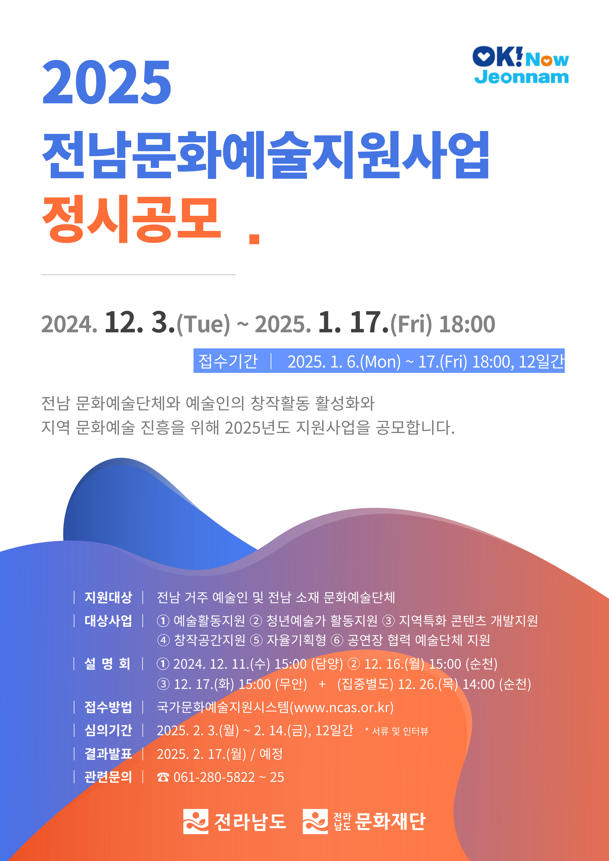 붙임 1. 2025 전남문화예술지원사업 정시공모 공고(제2024-108호).pdf (2MByte)
