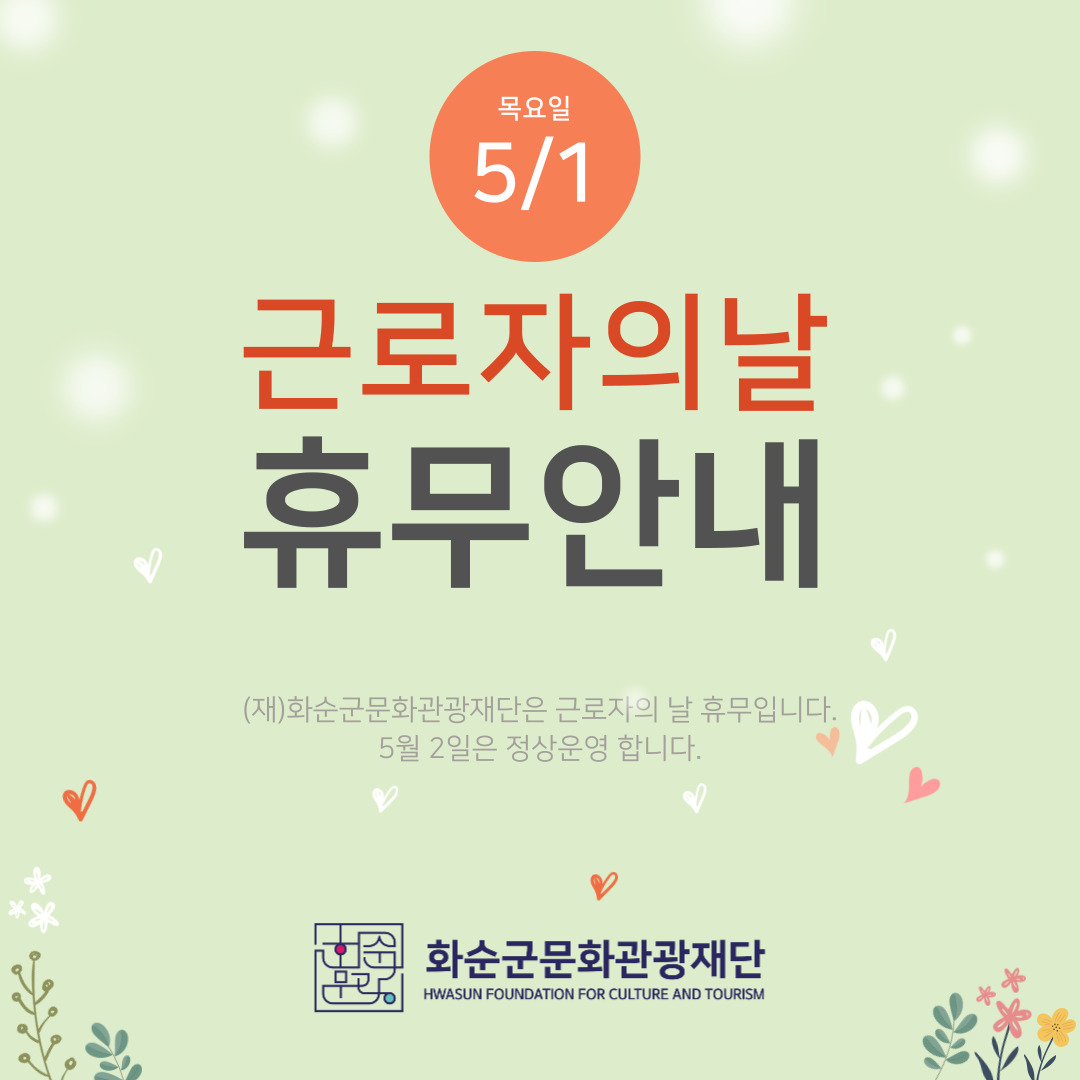 5월 1일 목요일은 근로자의 날로 휴무일임을 안내드립니다.