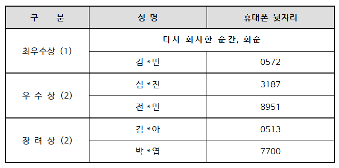 ※ 수상자분들께는 개별 안내 드릴 예정입니다.