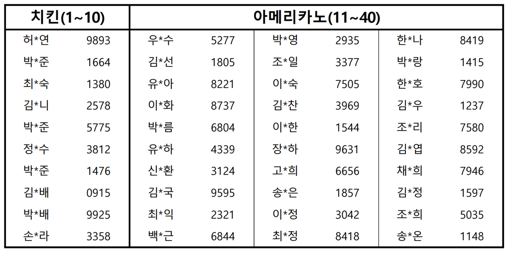 투표 참여이벤트 추첨을 통해 총 40인의 당첨자가 선정되어 아래와 같이 공고합니다,