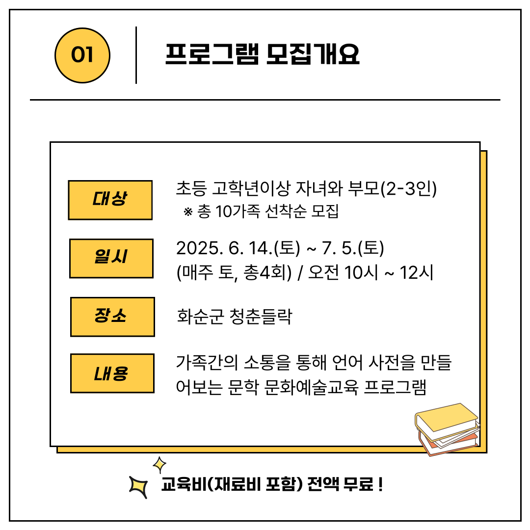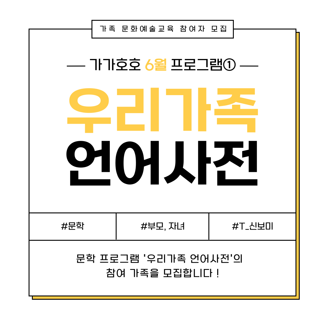 프로그램별로 순차적으로 참여자를 모집할 예정이며, 현재는 6월 프로그램 '우리가족 언어사전'의 참여자를 모집하고 있습니다.