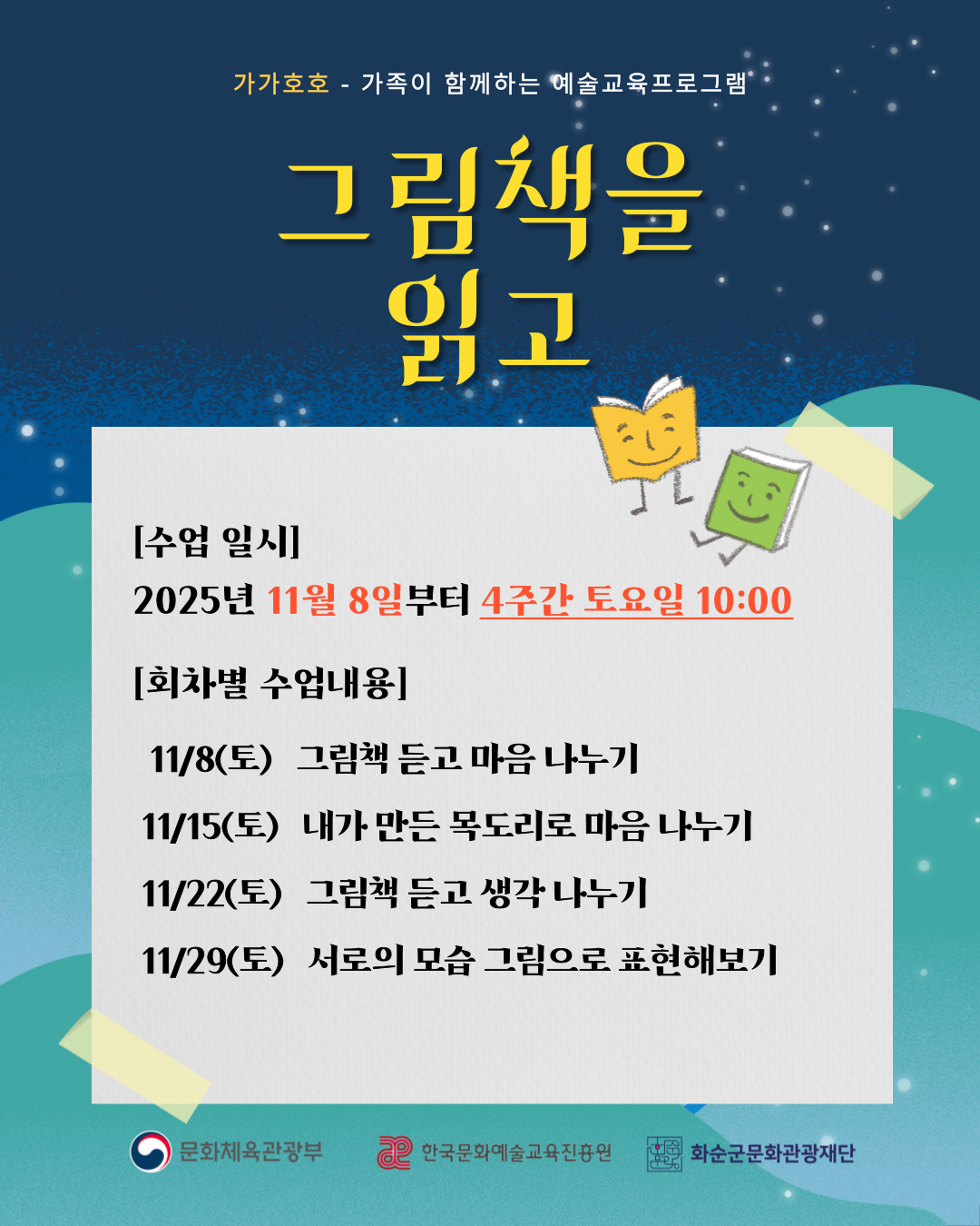 ○ 운영일시 : 2025. 11. 8.(토) ~ 11. 29.(토) / 오전 10시~12시(매주 토요일, 총 4회 진행)