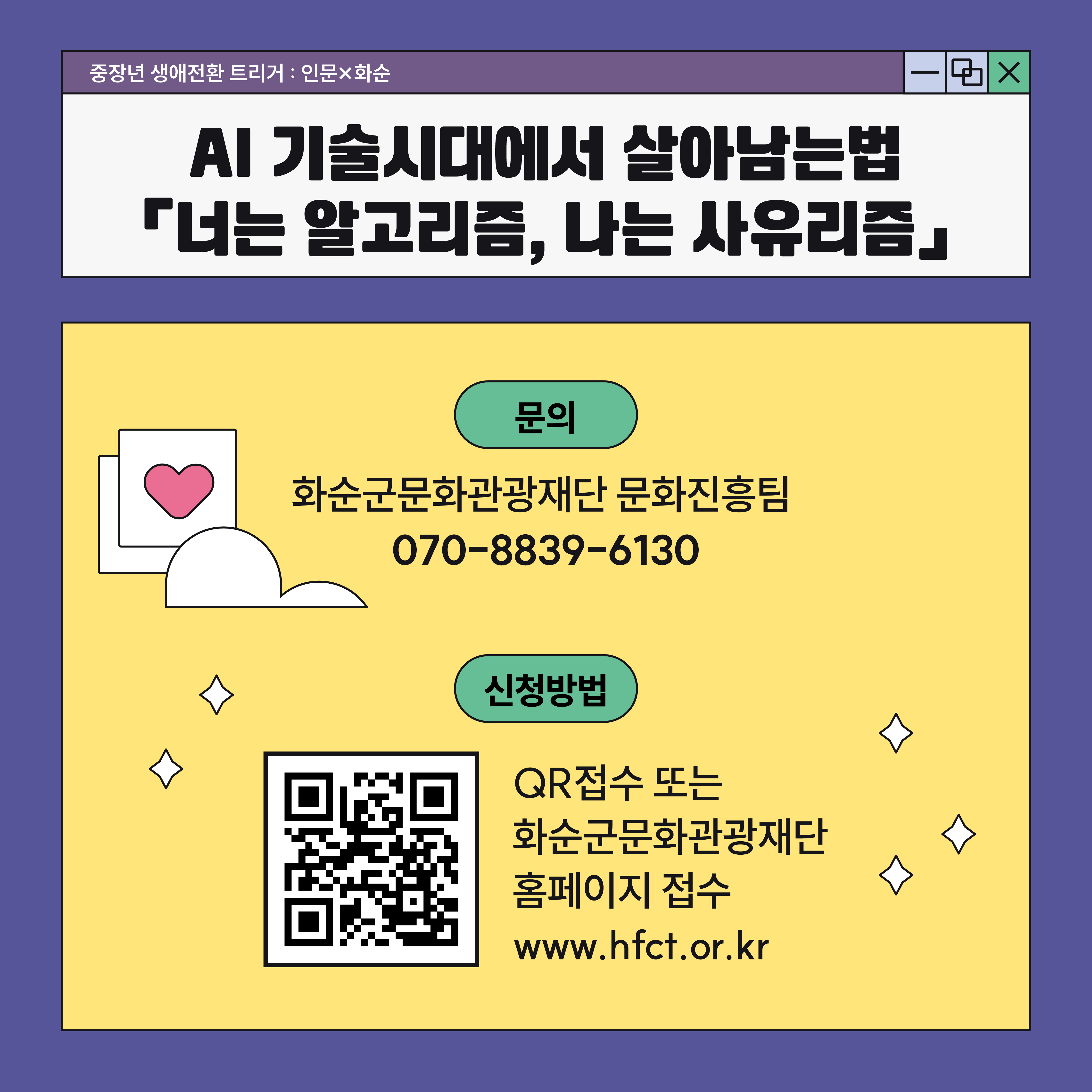 - (재)화순군문화관광재단 홈페이지 접수 또는 QR접수